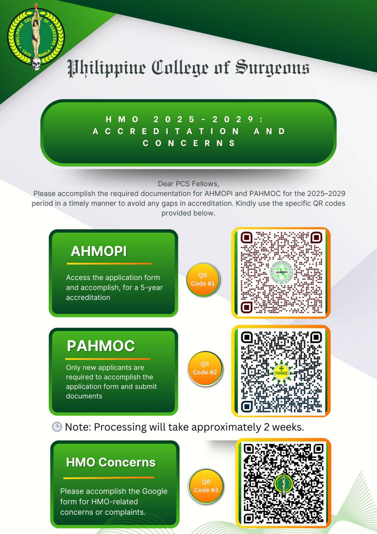 Since 1936 – the Philippine College of Surgeons has always been at the forefront in promoting and uplifting the practice of surgery in the country. The vision of our founders was passed on to us and we are always committed in maintaining this ideals. It is at our core as a college and as individual surgeons to assure that our countrymen will get the standard of care they needed coupled with compassion and a deep sense of responsibility.